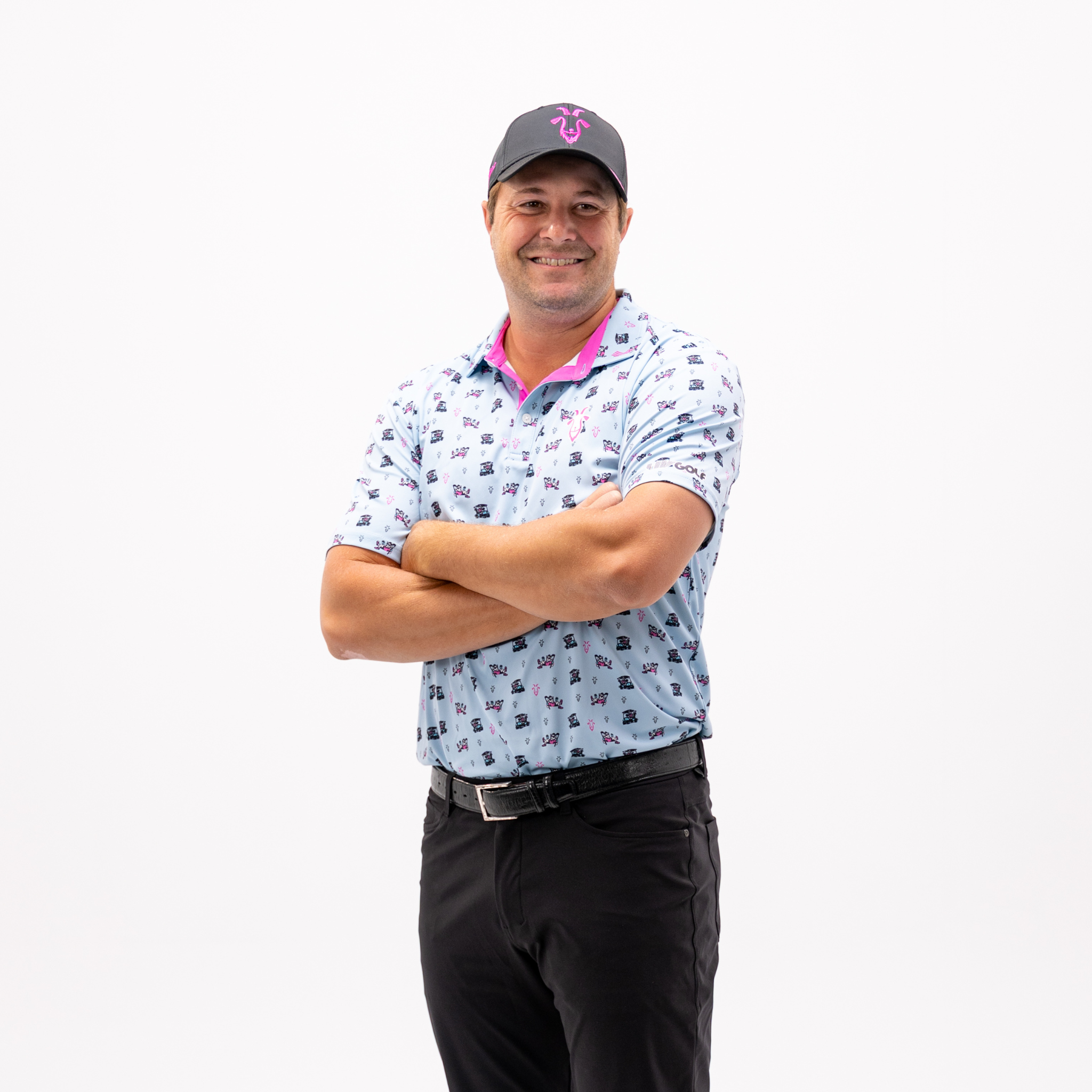 The repeat pattern of a goat living his best life in a cart is a subtle hint to your foursome that you're here for the vibes, not the victory