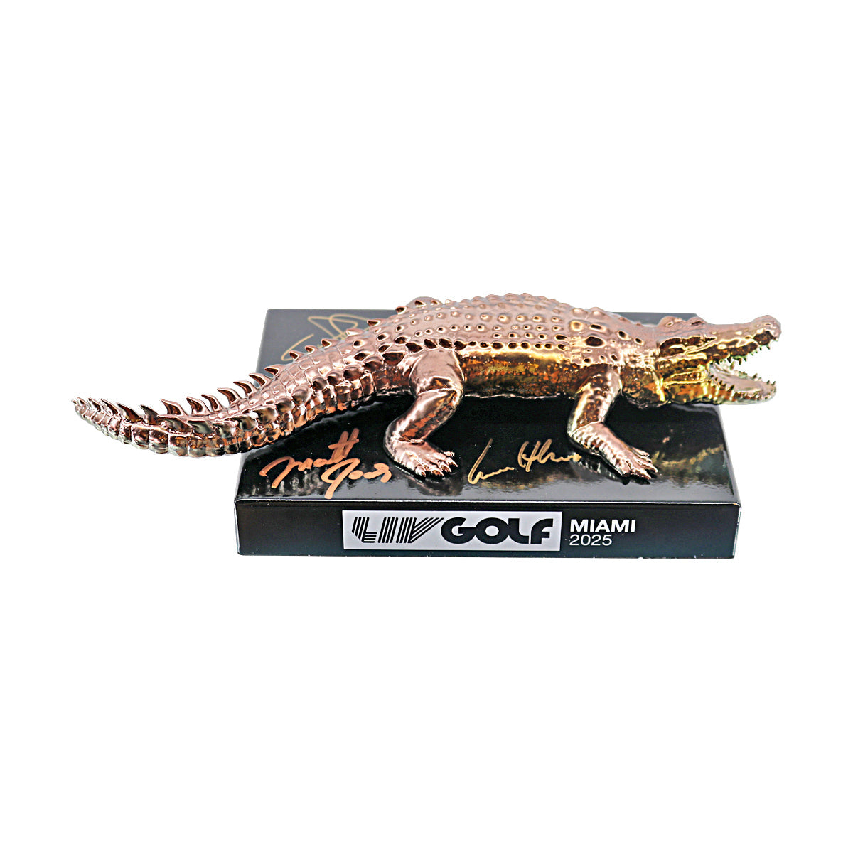 Elevate your golf collection of LIV Golf memorabilia with this limited edition commemorative tee marker, autographed by Team Ripper (#4 of 60) from LIV Golf Miami 2025. To ensure its legitimacy and lasting value, this item includes a CollectibleXchange QR coded hologram. Verify authenticity at CollectibleXchange.com or by scanning the QR code. It also comes with a LIV Golf LOA. Dimensions: 10" x 5" x 2 1/2" high, weighs 5 lbs.