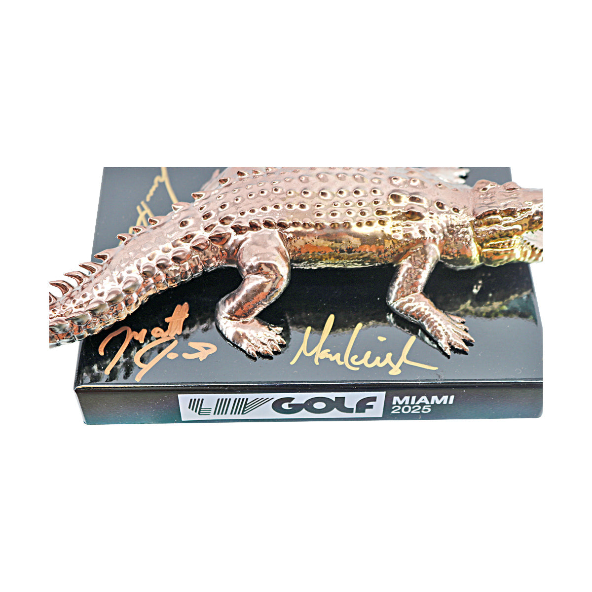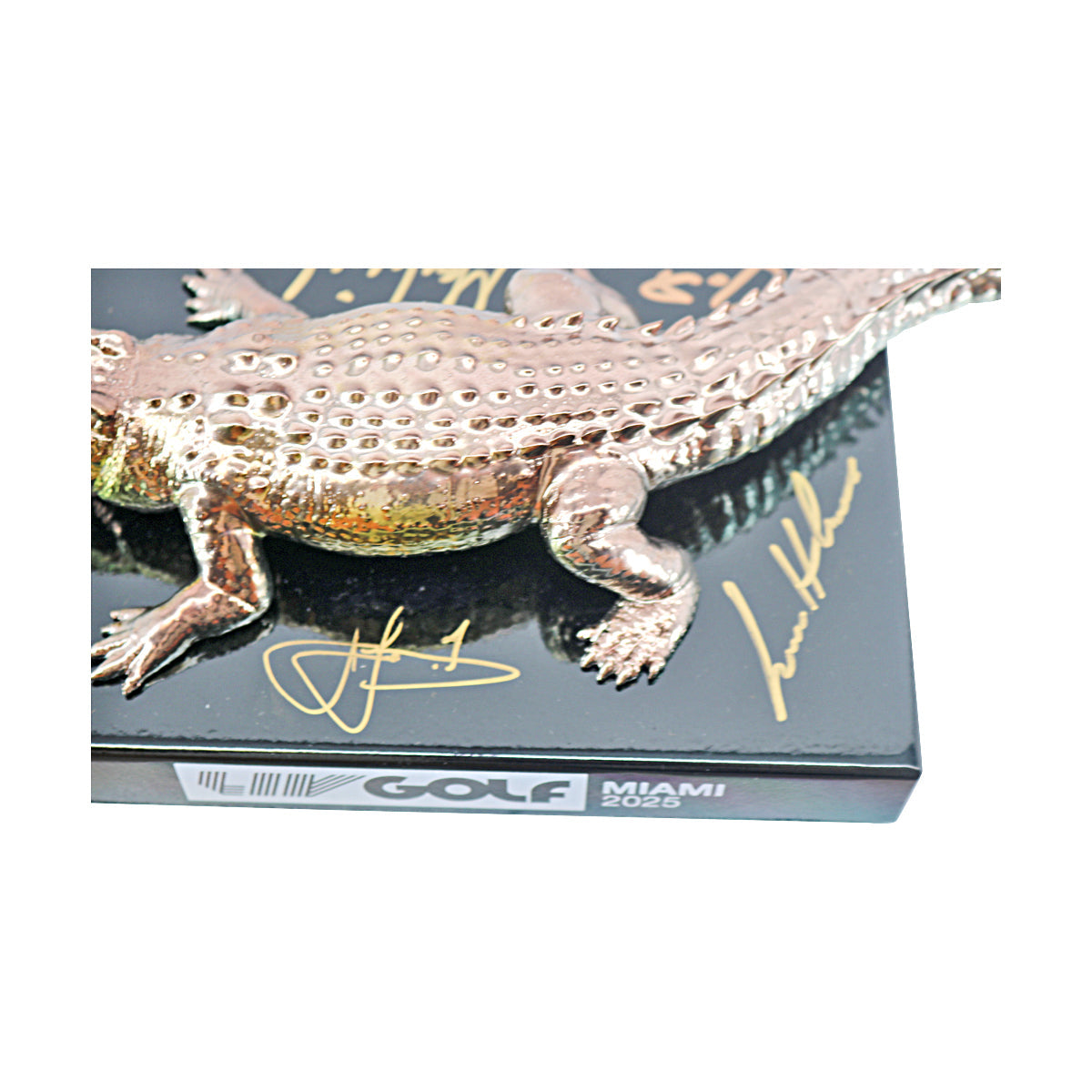 Elevate your golf collection of LIV Golf memorabilia with this limited edition commemorative tee marker, autographed by Team Ripper (#5 of 60) from LIV Golf Miami 2025. To ensure its legitimacy and lasting value, this item includes a CollectibleXchange QR coded hologram. Verify authenticity at CollectibleXchange.com or by scanning the QR code. It also comes with a LIV Golf LOA. Dimensions: 10" x 5" x 2 1/2" high, weighs 5 lbs.