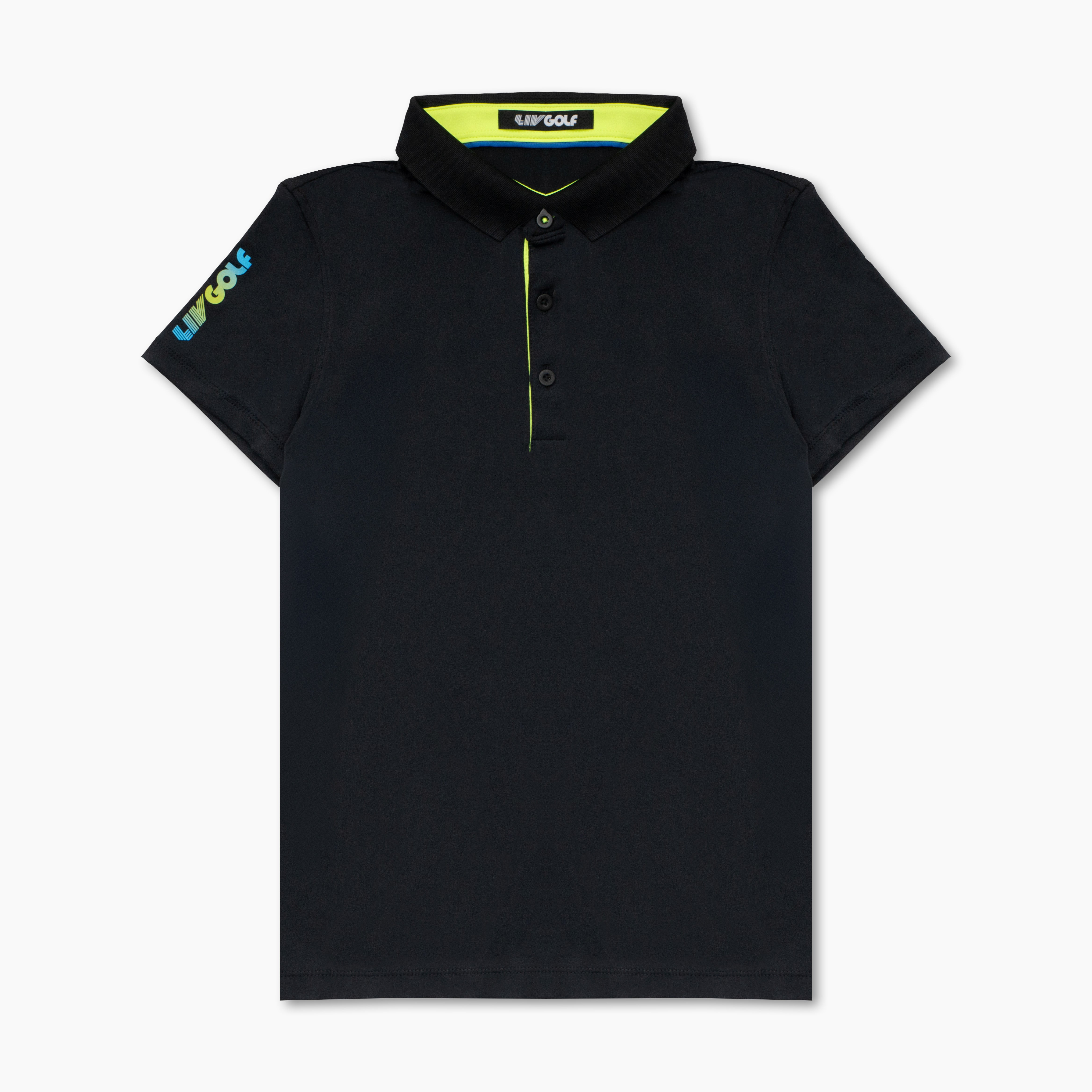 Fuel your game with the high-performance style of the LIV Golf Women's Racing Polo. Designed for those who play with speed and confidence, this polo features a sleek black silhouette accented by bold, multicolor LIV branding on the sleeve—bringing a touch of motorsport-inspired energy to the course.